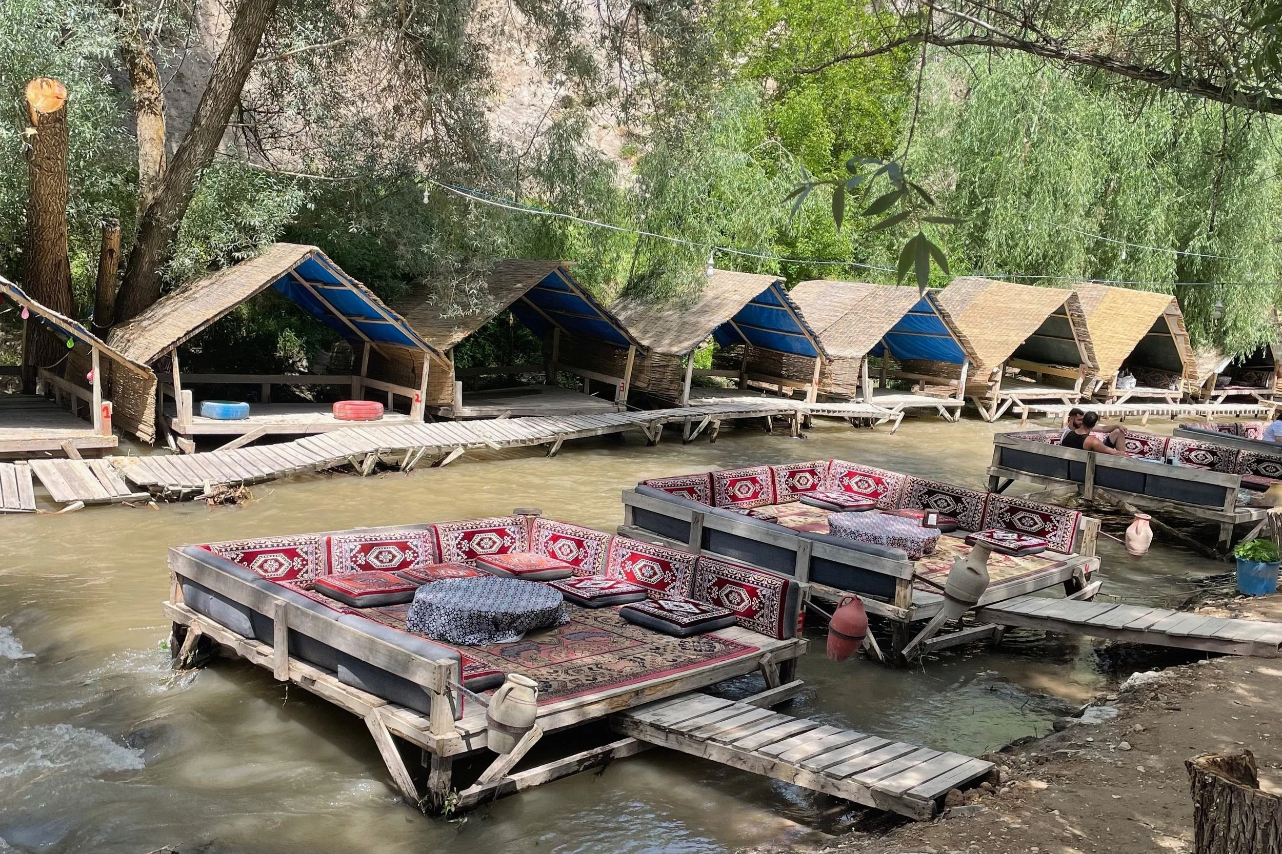Here, we walked a mile or so along the Melendiz river. The walk was easy and mostly along a shaded and well maintained trail. We stopped at a cafe with floating seating areas along the way, and finished at a restaurant serving traditional Turkish food for lunch.